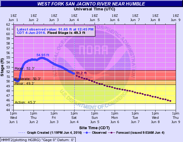 Major flooding continues across Fort Bend and Brazoria Counties with the river only falling very slowly at Richmond and rising to near crest at Rosharon. Massive low land flooding of the river flood plain is in progress across much of southern Fort Bend County into Brazoria County.