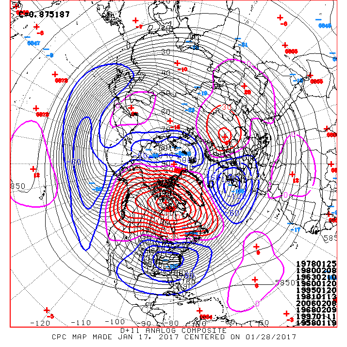 Just an nasty raw Winters Day across most of the Lone Star State except for the Coastal tier of Counties. The afternoon Update Day 8 to 14 Outlook as well as the Day 11+ Analogs suggest cold weather returns late January.