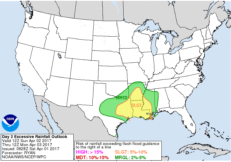 The Moderate Risk area remains for SE TX and has been expanded into Central and S Central LA.