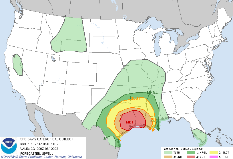 The latest Day 2 Convective Outlook Summary from the Storm Prediction Center (SPC):