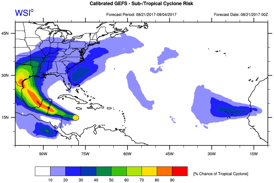 Latest 0Z Calibrated GFS Ensembles bullish on development for #Harvey once the system pushes back over the GoMEX; Texas should monitor