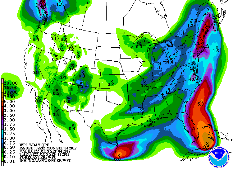 Many of us are out assisting our Neighbors in the massive cleanup effort after Harvey. The forecast is looking good with only a slight chance of heat of the day showers and thunderstorms possible today and tomorrow mainly along the Sea/Bay Breeze. Probably about a 20% chance at best. Tuesday we will likely see an increase in rain chances as the first rather strong early September Cold front arrives. This is about a week early according to our Local Climatology. Shower and some thunderstorms are possible as this rather fast moving front pushes in Tuesday evening and should be well offshore Wednesday morning. Cooler and drier air with its origin in Canada will drop day time highs to the low to 80's with night lows in the upper 50's to low 60's depending on where you live. Fingers crossed that the deep Eastern trough protects our Neighbors in the Bahamas, Florida and along the East Coast from any direct impact for Hurricane Irma.