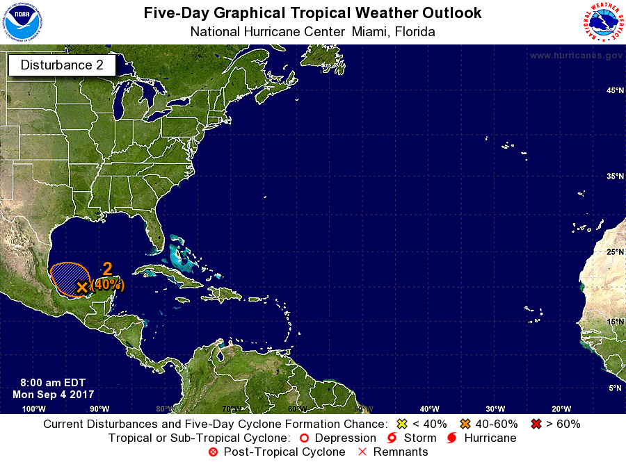 I think that low pressure area will be tagged as Invest 95L.srainhoutx wrote:No significant changes to our expected sensible weather forecast throughout the coming week. A strong early Fall Season Cold front arrives Tuesday night/early Wednesday and pushes well offshore ushering in much cooler and drier air. Rainfall amounts may bring a quarter to possibly a half inch at best in some isolated locations. An area of disturbed weather in the Bay of Campeche is being monitored by the NHC. Conditions appears hostile for any significant development for that feature due to increased NW flow with the frontal passage and very dry air over the NW and Central Gulf Coast. Major Hurricane Irma is expected to possibly impact the NW Leeward Islands and possibly Cuba over the next 5 Days before encountering that Cold front over Florida and turning N. Updates on Irma can be found in our Hurricane Central Area of the KHOU Weather Forum.