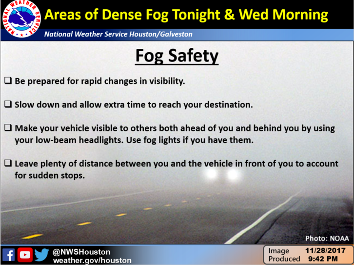 Safe travels this morning. A Dense Fog Advisory until 10AM this morning for all of SE TX. Expect another mostly sunny warm November day.