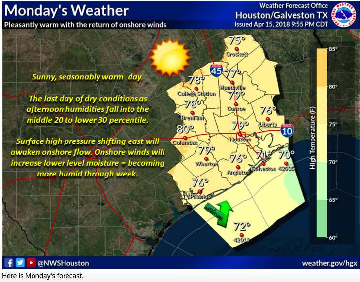 Just a bit chilly in NW Harris County early this morning with a temperature in my backyard of 45F. Breezy cool winds will bring a beautiful day, so enjoy it!