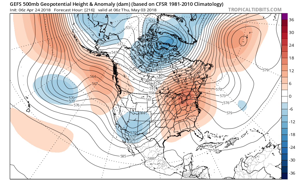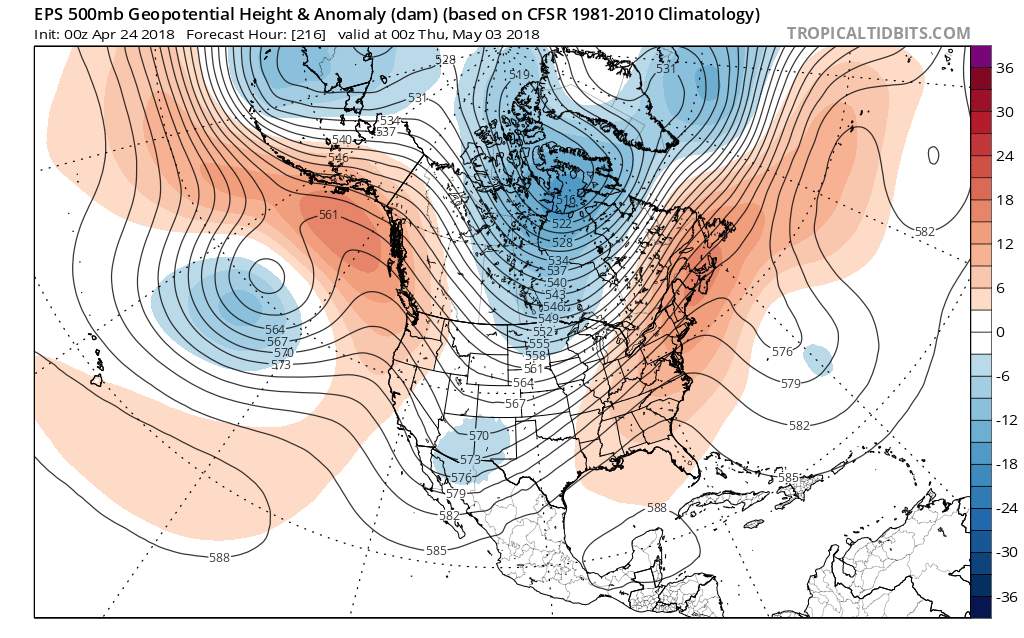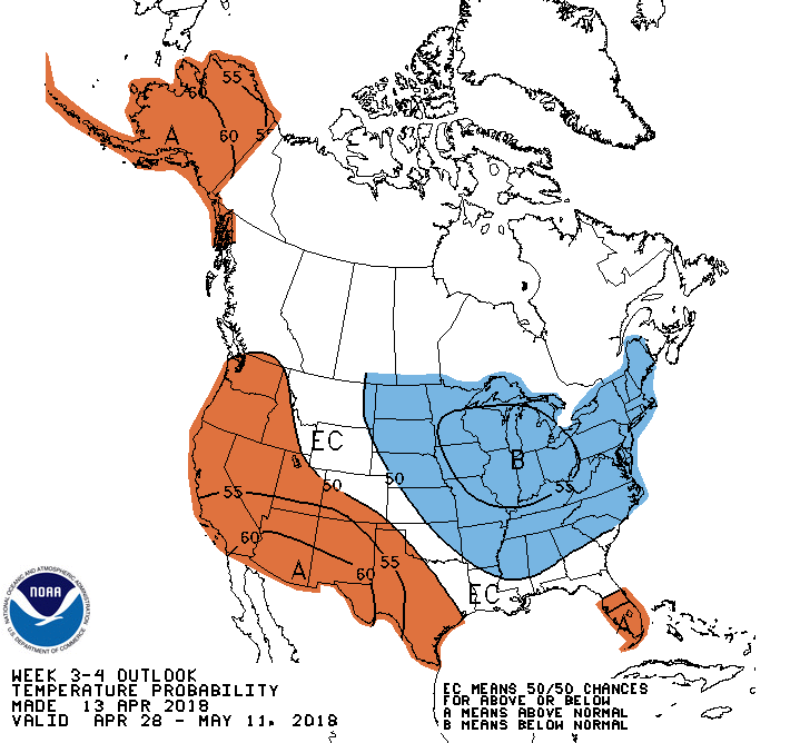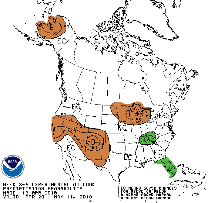 The afternoon Updated Climate Prediction Center Experimental Week 3 to 4 Outlook that takes is into early/mid May suggests a deep Central/East Coast trough with equal chances of normal precipitation.