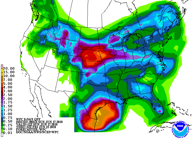 Note: Excessive rainfall of 10-15 inches may focus near the coastal bend/south TX Monday-Wednesday resulting in significant flooding threat.
