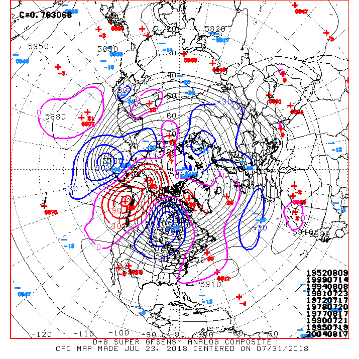 Both the GFS and ECMWF suites of guidance suggest a deep longwave trough begin to take shape next week possibly bringing additional and possibly increasing rainfall chances as we near the end of July. Climatology suggest this may be the last of the extreme Heat for the summer season as we begin that slow but steady march toward Fall.