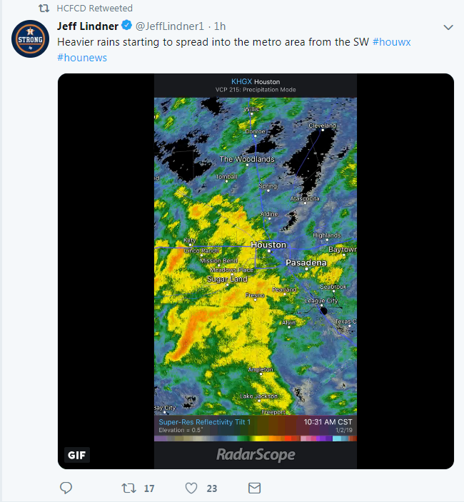 Thanks srain! Need to plan my back to work wardrobe for tomorrow.srainhoutx wrote: ↑Tue Jan 01, 2019 4:03 pmUnfortunately the frontal boundary that was suppose to pass us today has stalled to our West around La Grange to Brenham to around Madisonville. those of us in Metro Houston may not cool down until a Pacific front passes sometime Thursday behind the big storm system that is expected to bring rounds of freezing rain well to our NW and North. It just goes to show how difficult the sensible weather forecast can be in in the very short range. That front was suppose to chill us down to the low to mid 40's tomorrow. Perhaps it will meander further S and E, but with the pesky SW flow aloft with the very noisy sub tropical jet, I suspect we will be stuck in the 50's to low 60's.