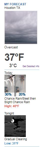 No rain is a good thing.djmike wrote: ↑Sun Mar 03, 2019 9:22 am Doesn’t look like any rain at all according to the rain map. Looks all north in NE TX and just light rain. Here Im not seeing anything. Also according to the wind barbs, fromt looks like it has cleared Beaumont. Wondering if the rain portion was a complete bust. We shall see... edit: NWS started us with 90% early this morning and it has dropped now to 50% chance of rain. They may be thinking same thing here in Beaumont. We’ll see.