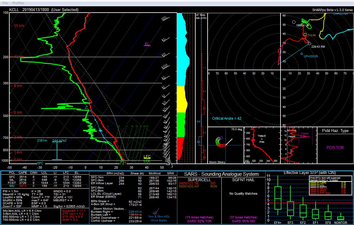 For anyone interested, here is a sounding issued out of College Station yesterday when the tornado over Hearn was occurring. Notice how the cap had weakened enough and low-level shear had increased enough to provide plenty of rotation. Also shows how important that 0-1km shear is for the formation of tornadoes in general.