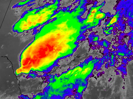 central Texas from Austin to near Del Rio. Storms remain within an