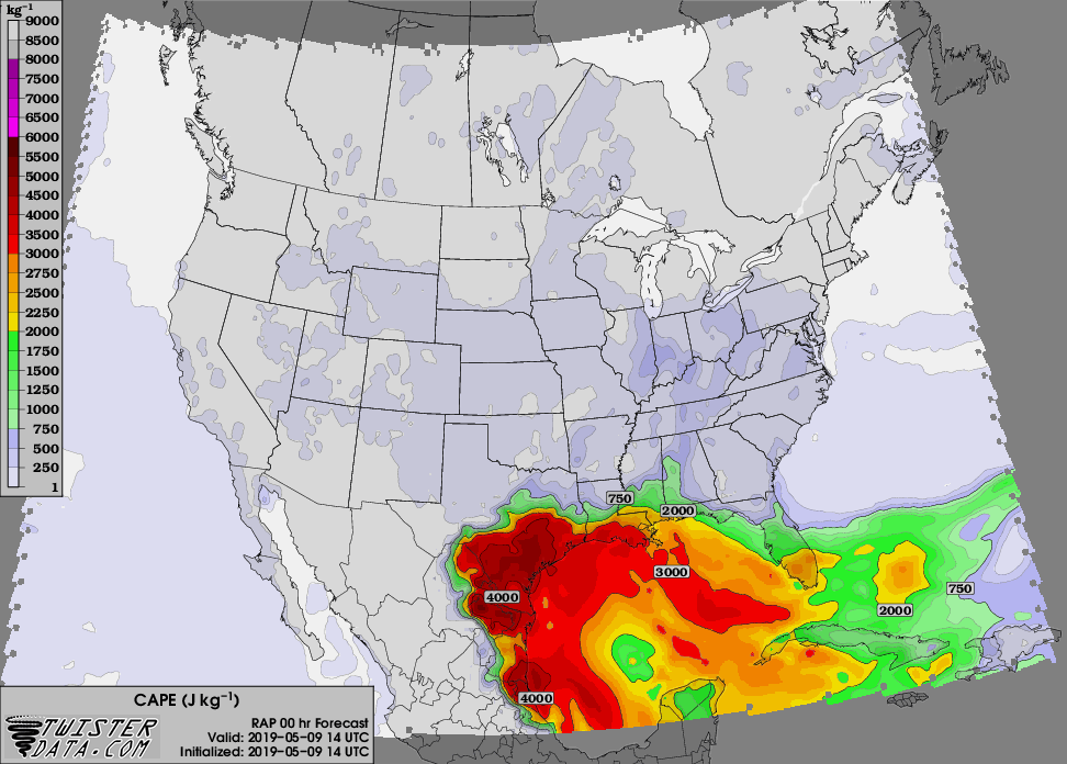 Extremely thick cloud deck over Southeast, Texas currently which will keep things semi stabilized as ingredients try to come together. Now if the sun would poke out a bit it would really stir things up. I would look for a wide spread 1-2 inches or rain with some isolated 3 to 4 inches totals across the area. At least I hope. I would like to mow my back pasture sometime in the next few weeks.