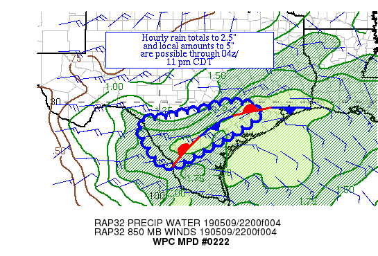the mid-level cap. Hourly rain totals to 2.5" and local amounts