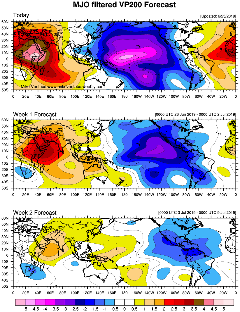 a wealth of information, as always - really appreciate yor insight srainsrainhoutx wrote: ↑Tue Jun 25, 2019 7:51 amNot likely, but a general unsettled pattern does look to be developing for the Eastern Pacific, Mexico and Texas. A robust Kelvin Wave is likely assisting EPAC Invest 93E in its organization process and the CCKW likely will spin up additional tropical cyclones the next couple of weeks. Nocturnal thunderstorm complexes seem likely over Mexico into the weekend and may increase as a surge of deep tropical moisture arrives over the Yucatan this weekend and spreads N and W around the Western flank of a sub tropical Ridge located to our East. This weekend we likely will see an inverted trough move out of Louisiana into the Eastern half of Texas increasing daily rain chances once again. The 4th of July Holiday period could be rather unsettled and we will have that discussion in the July Topic as the week progresses. I do believe our boring weather pattern has ended for the time being.unome wrote: ↑Tue Jun 25, 2019 7:33 amI see 93E isn't modeled to head toward our direction, but what about the east coast storms down there ? Is this headed toward TX?srainhoutx wrote: ↑Tue Jun 25, 2019 7:23 am