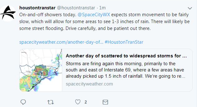 Geesh! Getting dumped on in Beaumont! This lightning is intense! Road is flooded and lights flickering. Wasn’t expecting this for this early and this intense!
