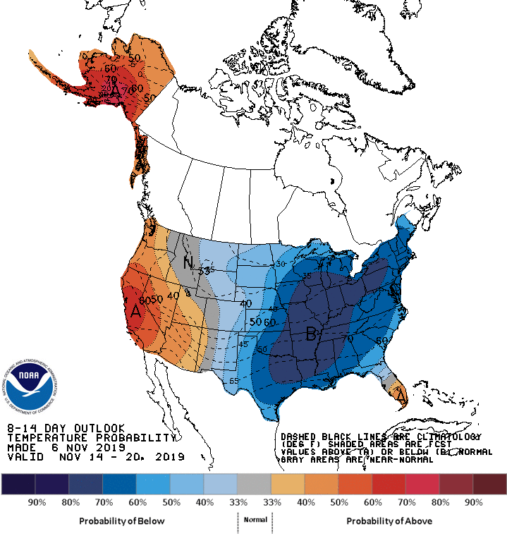 It's certainly early to see that kind of cold, but the Climate Prediction Center in their just Updated Day 6 to 10 and Day 8 to 14 Outlooks suggest the potentially chilly and unsettled weather may stick around for awhile.