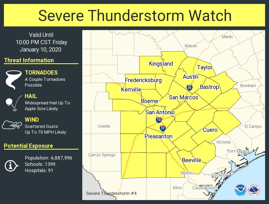 A severe thunderstorm watch has been issued for SC TX until 1000pm.