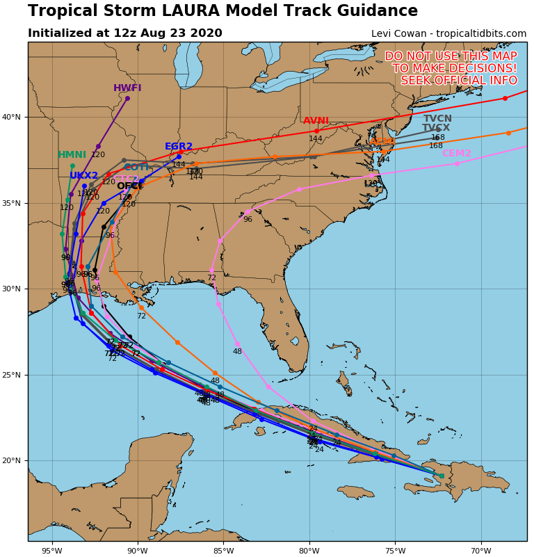 06z Euro op takes Laura into Central LA coast, but 06z Euro ensemble is spread up and down the TX coast from Brownsville to the LA border.