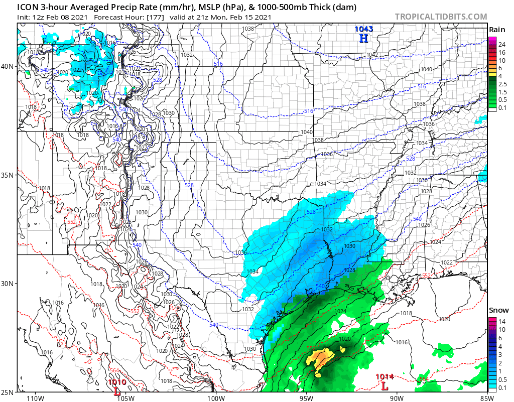 srainhoutx wrote: Mon Feb 08, 2021 8:02 am You folks should start monitoring the NAM regarding the first front on Wednesday. The NAM does a good job regarding shallow airmasses and may assist in just how cold the first push will be.