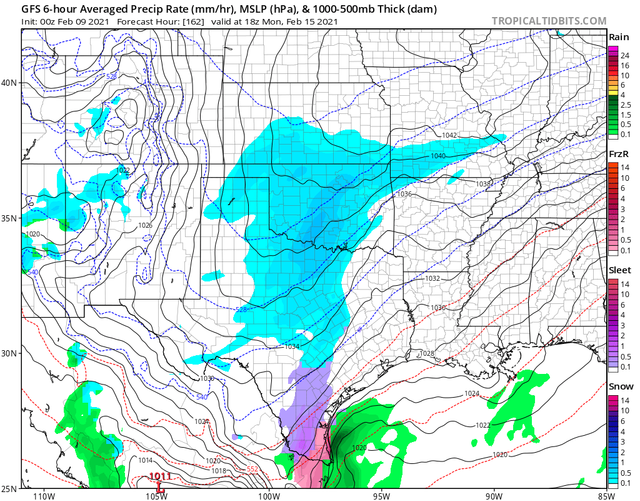 KHOU BLake wrote: ↑Mon Feb 08, 2021 11:56 pm I think the NAM will offer up a more realistic idea of what temperatures we may see. Arctic air is tricky and may be colder than models are advertising. Although I do find it strange that the GFS was so cold with "only" a 1047 mb high over the northern plains. Seems lightweight. We've pushed our daytime highs into the low to mid 30s for the weekend and Monday but that may be too bullish. May have to inch them back up.
