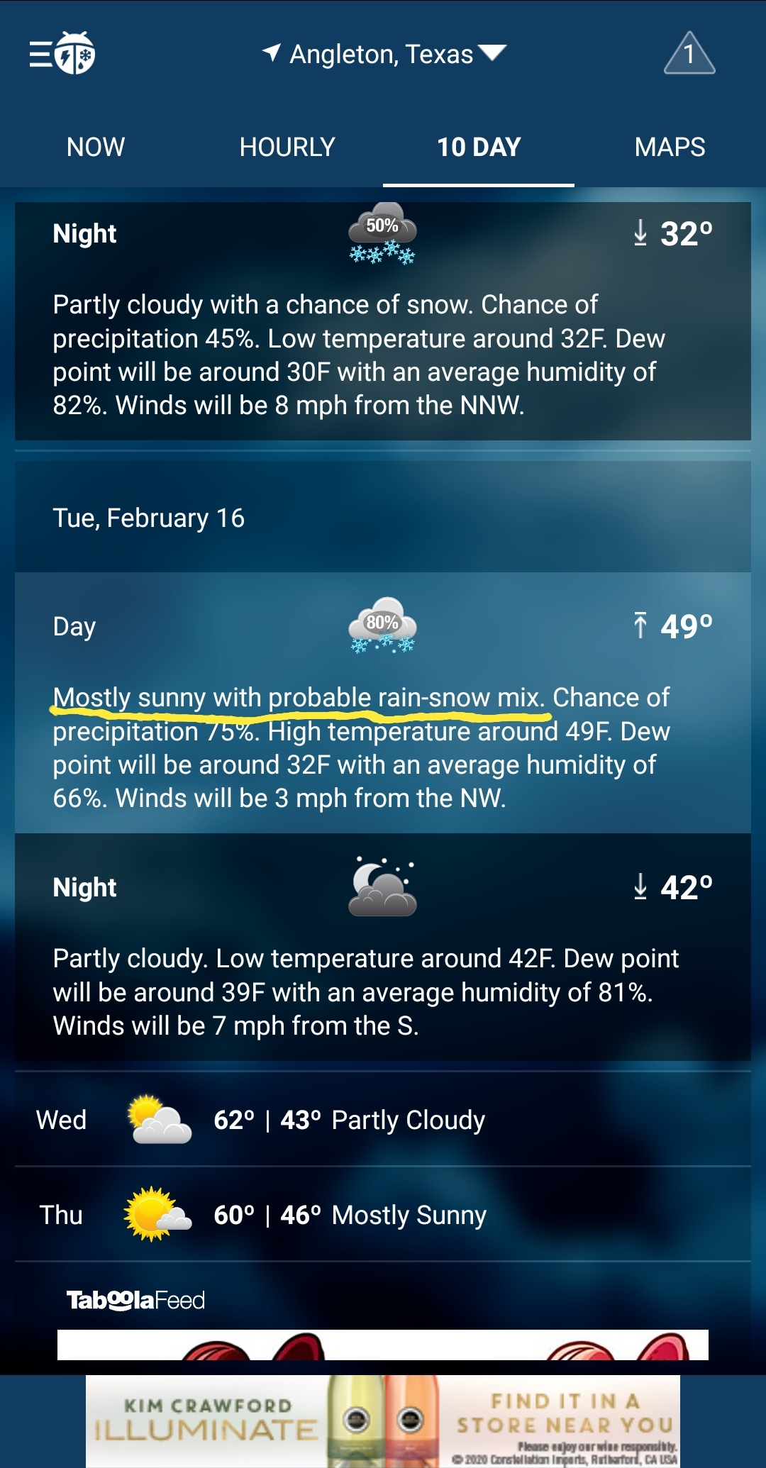 If Arctic air may be colder than models are advertising, then why the discussion about having to raise the currently forecasted high temperatures?KHOU BLake wrote: ↑Mon Feb 08, 2021 11:56 pm I think the NAM will offer up a more realistic idea of what temperatures we may see. Arctic air is tricky and may be colder than models are advertising. Although I do find it strange that the GFS was so cold with "only" a 1047 mb high over the northern plains. Seems lightweight. We've pushed our daytime highs into the low to mid 30s for the weekend and Monday but that may be too bullish. May have to inch them back up.
