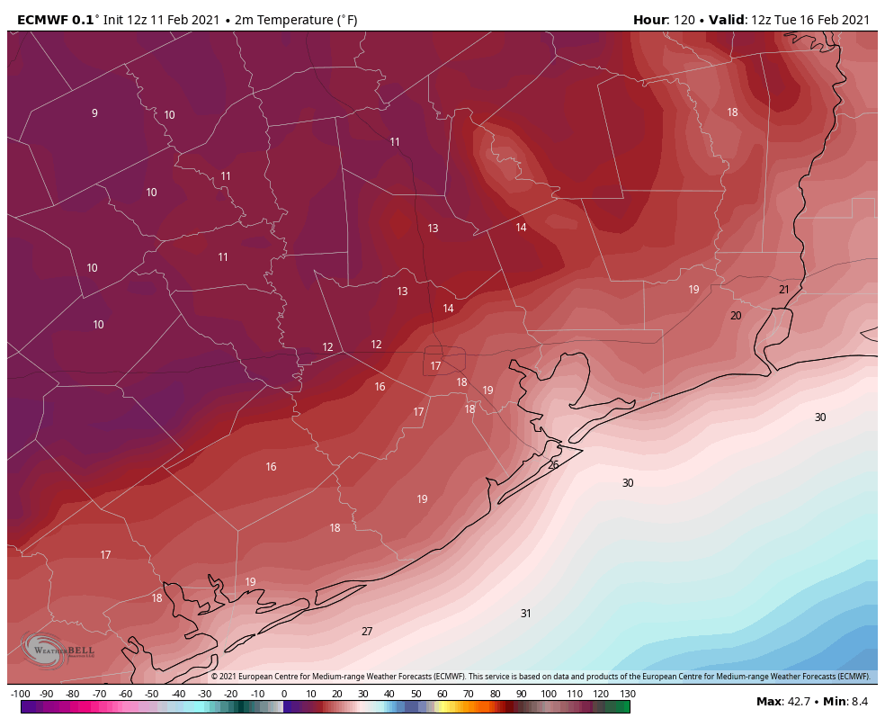 don wrote: Thu Feb 11, 2021 12:50 pm 12z Euro shows a little bit of everything. With sleet accumulations of up to 1+ inches along and north of the 59 corridor. Snowfall accumulations of 2-5 inches along and north of the 59 corridor, and up to.25-.75 of an inch of freezing rain accumulation mainly along and south of 59 to the coast.