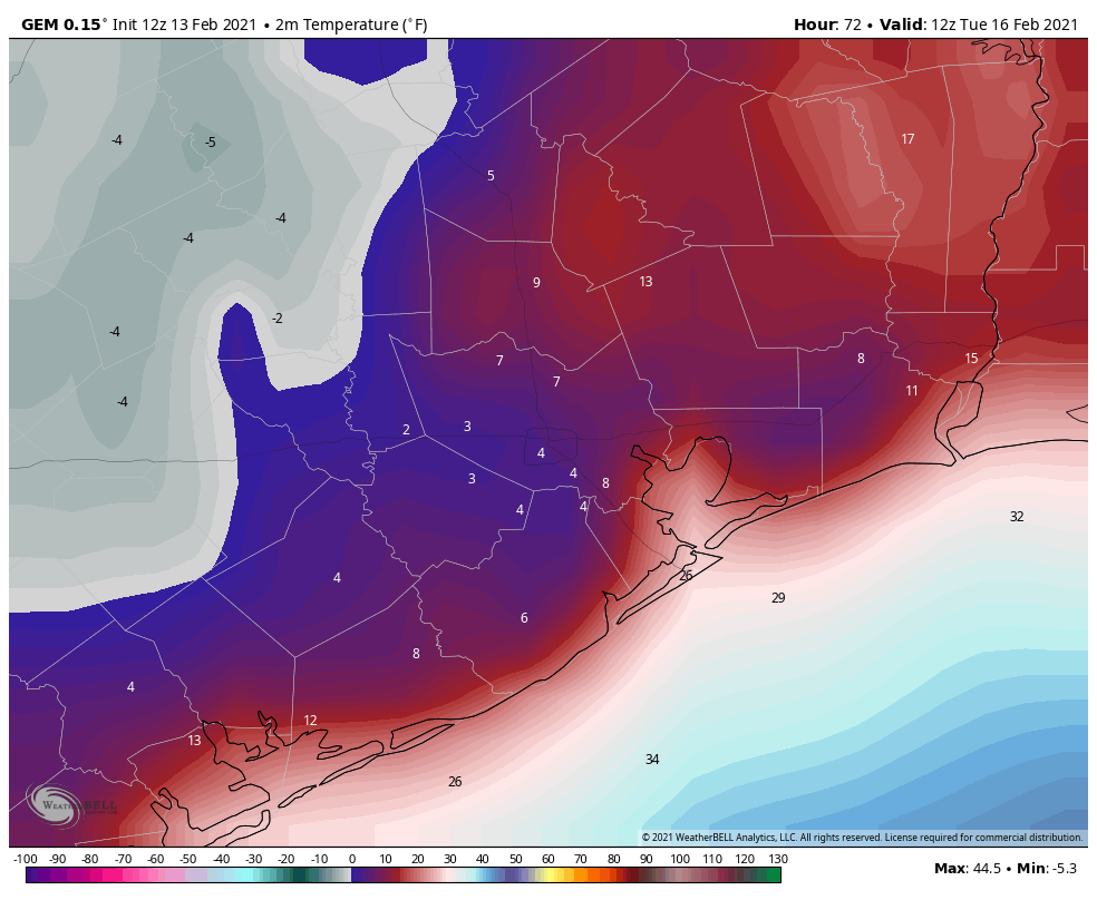 jerryh421 wrote: Sat Feb 13, 2021 10:38 am 12z GFS trended in a good direction for snow in Houston. Hopefully the south trend continues!