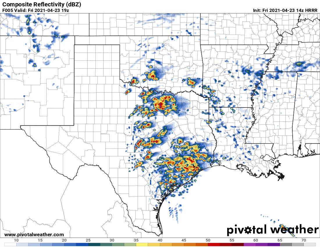 Pulses seem North and West of Hwy 59 mostly.don wrote: ↑Fri Apr 23, 2021 11:00 am Yes, the weekend will be nice after today.I think it's going to be a pretty active day around here.The impulse triggering showers right now around the coastal bend region will be the trigger for thunderstorms later this afternoon.Im also a little concerned with street flooding issues in urban areas if we start to see storms redeveloping over the same areas like the HRRR is showing.