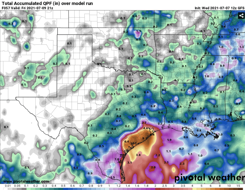0z GFS has shifted the heaviest axis of moisture further northeast. Offshore and along the middle and upper Texas coastal counties.