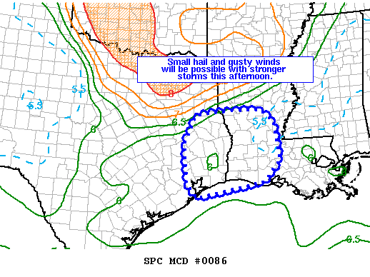 My main attention this morning has been with assessing the thunderstorm potential for this afternoon as the 12z progs and high resolution models have been suggesting some decent instability around the region. Currently watching strong thunderstorms developing along the coast and right over Galveston. Could be some small hail and 30-40mph winds with some of that activity over the next few hours. Latest high resolution visible sat imagery showing a rather active cu field developing across the region so I would think it is only a matter of time before we start to see some isolated activity develop closer to the metro area. The thunderstorms along the coast look to be developing along a left over boundary and a differential heating zone due to the sea fog right along coast. I will be taking a closer look at Friday's setup shortly but my initial thoughts are that much of the severe weather will remain north of southeast Texas with mainly a rain/isolated strong storm impacting the region. It will not be anything like last week as the best dynamics will remain well north of us across the central plains.