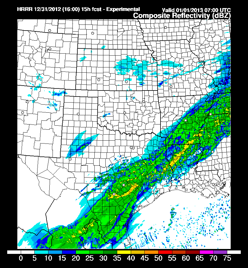 The 16Z HRRR is rather suggestive of elevated storms and training rainfall developing after midnight into the early morning hours of New Years Day.