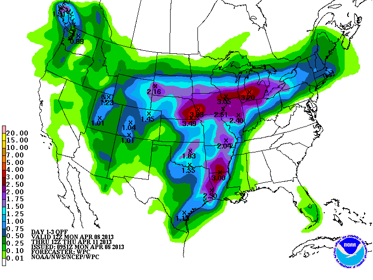 The overnight guidance has come into somewhat better agreement suggesting a strong upper low/trough will develop across the Four Corners Region and eject NE into the Central Plains beginning on Monday. The fly in the ointment continues to be a secondary vort max along the southern end of a positive tilted trough and capping issues with SW winds aloft while strong southerly surface winds increase off the Gulf. The models continue to suggest that a dry line will develop across W Texas late Monday into Tuesday. On Tuesday, a Pacific cold front will race SE across the Southern Plains and meet that dry line generating strong to severe storms from San Antonio/Austin on NE into the Dallas area and on NE. The most likely scenario will be that a squall line will develop and march E into SE/E Texas during the early morning hours of Wednesday, but the timing may be a bit slower if the secondary energy holds back a bit as the European models suggests. The best chance of heavy rainfall appears to be across Louisiana and Arkansas and possibly portions of E and NE Texas where capping issues will not be a problem. The main threat at this time appears to be large hail with damaging winds, but an isolated tornado or two are not out of the question. Being 2-3 days out, we will continue to monitor for any changes.