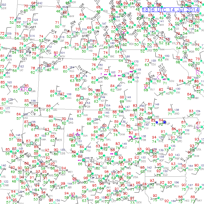 The 12Z Euro continues to advertise a stormy Thursday night into Friday as a robust short wave dives SE in the NW flow aloft. The front is certainly making its self known across Nebraska as it continues to head S toward Kansas. Very pleasant temperatures in the 70's with dew points in the mid to upper 40's. That is not typical mid July weather across the Plains.