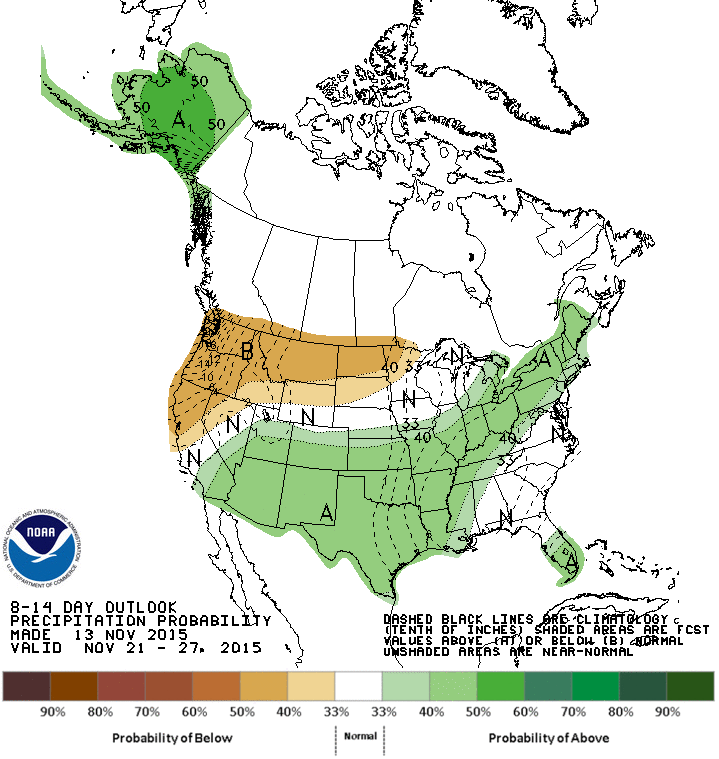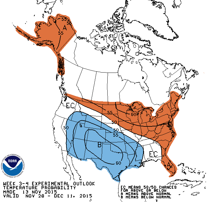 Looking further out to the end of November and the beginning of December, the Climate Prediction Center in the Friday afternoon Updated Experimental Week 3 to Week 4 Outlook suggests more of the same.