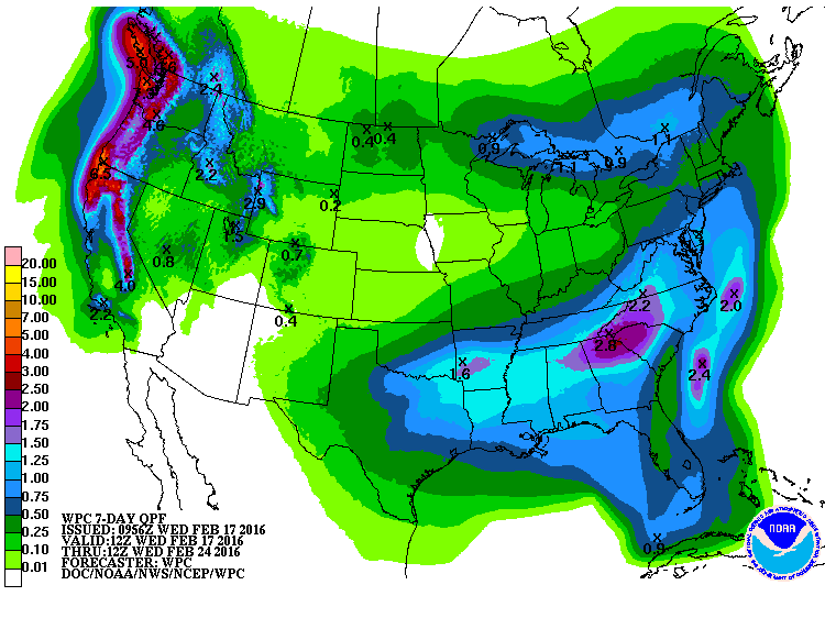 The Weather Prediction Center afternoon Updated QPF for later this weekend/early next week suggests the best chance of rainfall we've seen in a long while. Fingers crossed they are right!