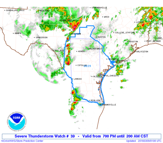 Enhanced severe threat remains primarily across areas West of I-45 at this time. The SPC has issued a Severe Thunderstorm Watch to our SW until 2:00 AM CST.