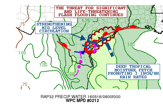 Wednesday into Thursday appears to be the timeframe we'll need to watch carefully as the Western upper low digs a bit further South and a robust shortwave moves across Texas. The various computer guidance suggest PW's may increase further to above 2 inches. Deep tropical moisture from the Weather Caribbean and the Western Gulf may surge inland allowing for rainfall rates of 2 to 4 inches per hour.