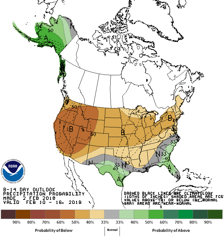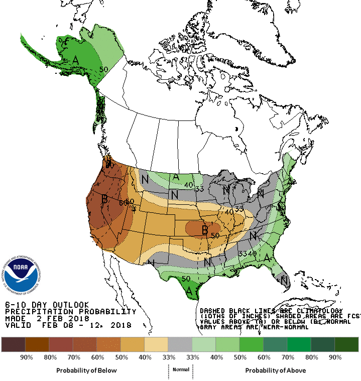The afternoon Updated CPC Day 6 to 10 and Day 8 to 14 Outlooks suggests below normal temperatures and slightly elevated precipitation chances throughout the Extended Range.