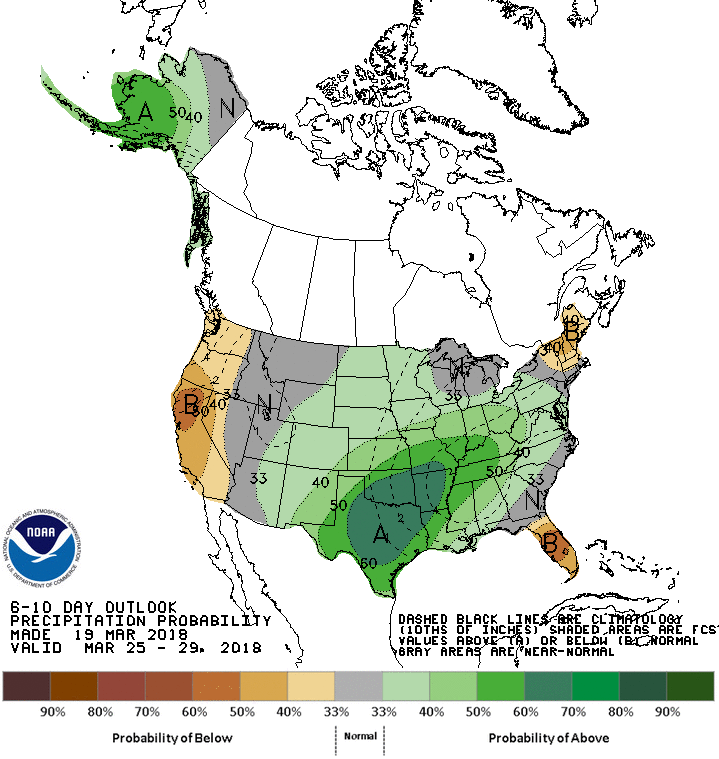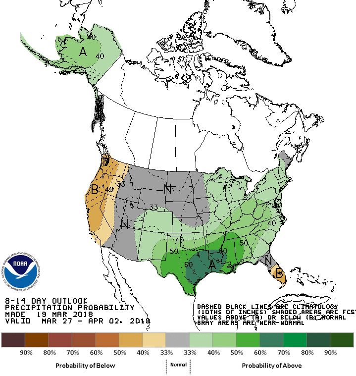 The afternoon Updated Precipitation Forecast for Day 6 to 10 and Day 8 to 14 suggests wet weather may return as we end March and begin April.