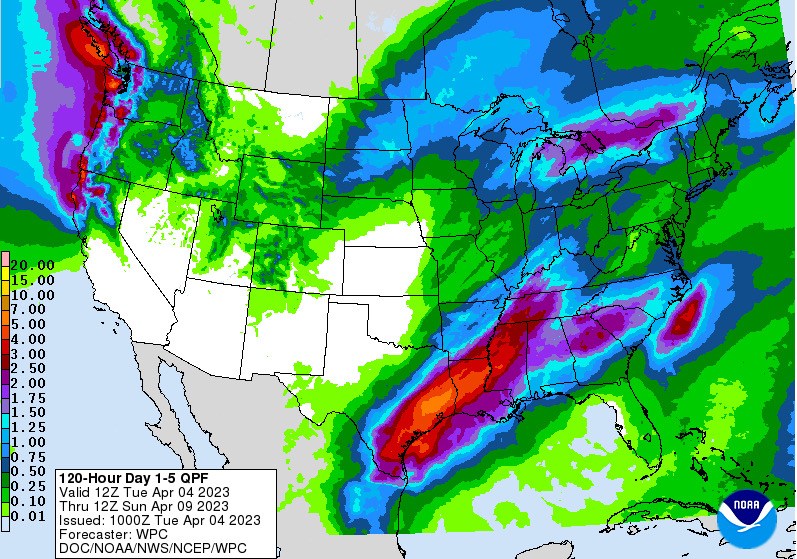Widespread rainfall totals of 3-6 inches will be possible from Wed-Sat with the majority of the rains falling on Thursday and Friday. Isolated higher totals will be possible given the saturated moisture profile. Rainfall rates look to be in the 1-2 inch per hour range which we can handle and hopefully well timed breaks in the activity will give a chance for urban ponding to drain off.