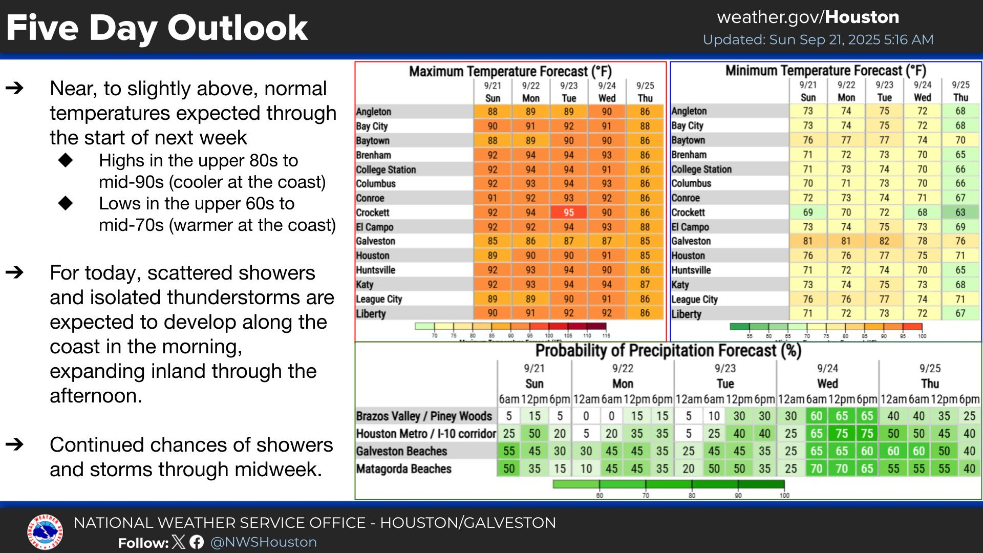 - Reforms with scattered showers in the Houston area.