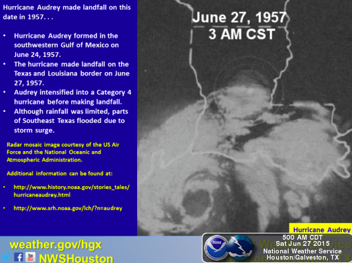 Today marks the 58th year anniversary of Hurricane Audrey which made landfall along the SW LA coast as a CAT 4. Keep in mind this was also an El Nino year with only 8 named storms but it only takes one.