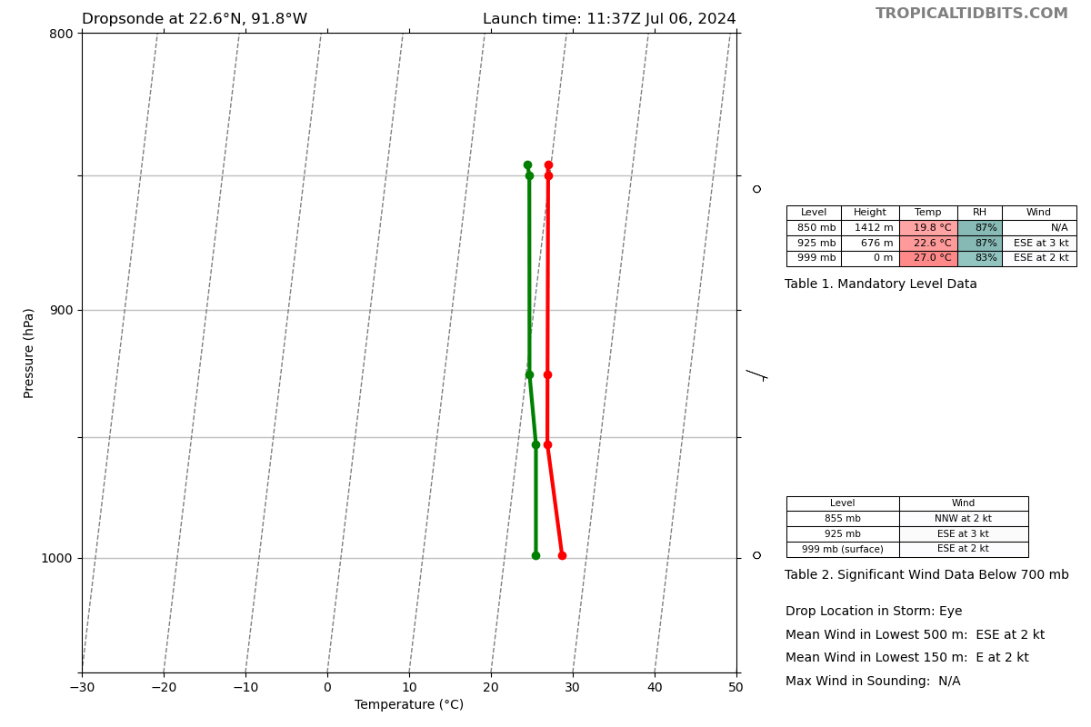 Dropsonde at center 999 mbs