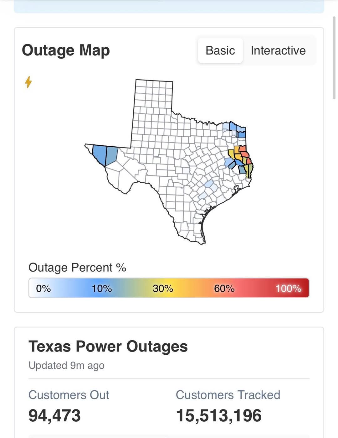 Power outages are mainly focused in the hard hit ice areas of E and NE TX.