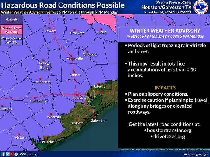 ▶ A Winter Weather Advisory is in effect for most of Southeast TX