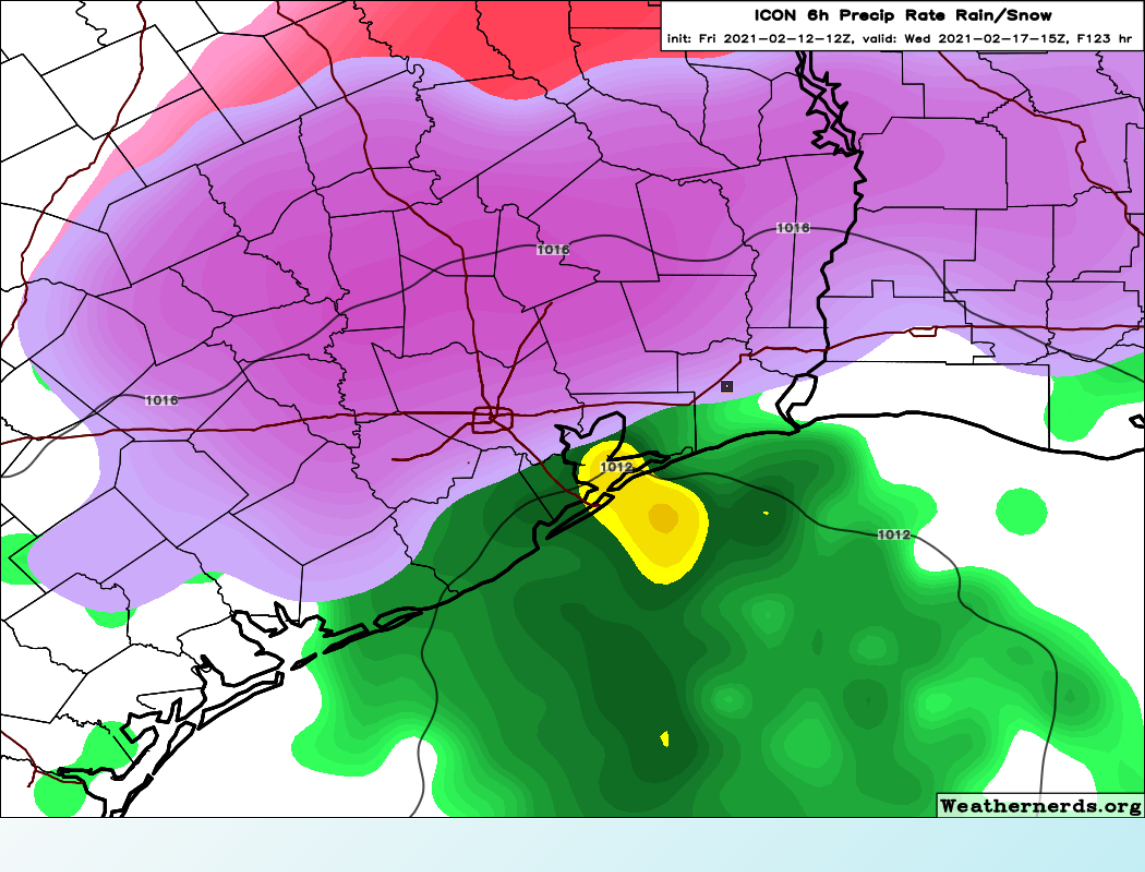 don wrote: Fri Feb 12, 2021 10:55 am I know its early and we still have to get through storm #1 but the storm on Wednesday may be even stronger than Mondays storm. As models are starting to converge on a major ice storm for southeast Texas after the President day storm.As an even stronger gulf low develops on Wednesday.
