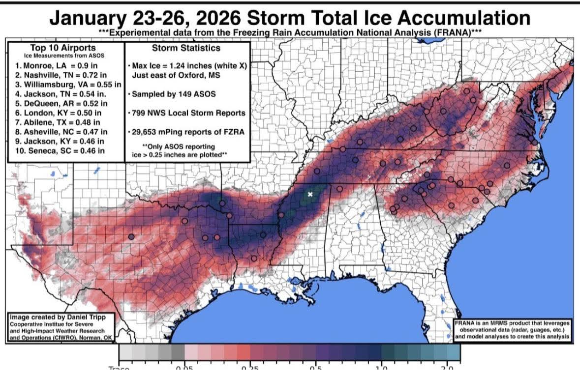 Total ice accumulation for this storm event.