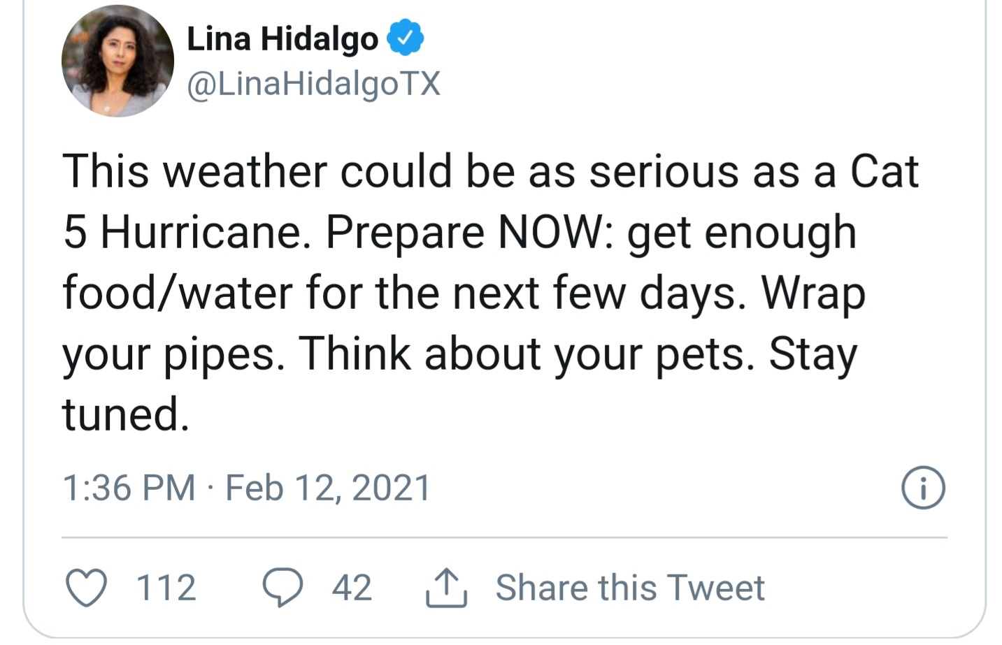 Doesn’t seem like much of an event south of 10 with that wording.srainhoutx wrote: ↑Fri Feb 12, 2021 3:02 pmURGENT - WINTER WEATHER MESSAGE