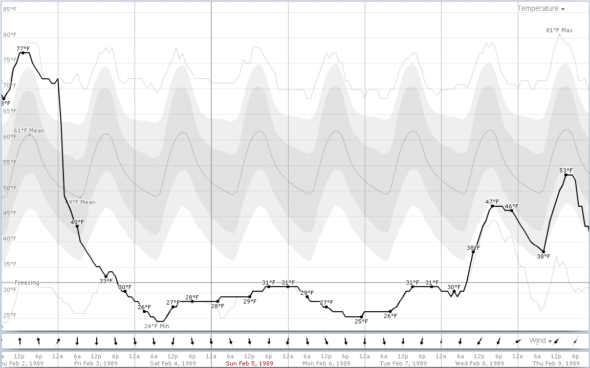 Then there was the February of 1989 freeze. Hobby was below freezing for over 4 days:
